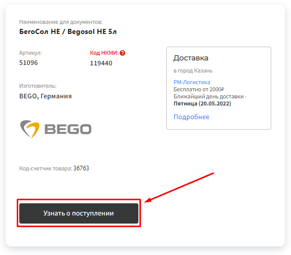 Если Вас заинтересовал какой-либо товар, которого нет в наличии, просто оставьте заявку в форме «Узнать о поступлении» (фото ниже). Как только товар поступит наш склад мы сразу оповестим Вас об этом.